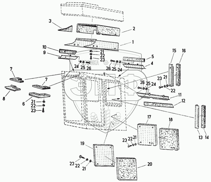 Каталог запасных частей к технике: Fortschritt Е-281-С. Кабина (изоляционная обшивка)