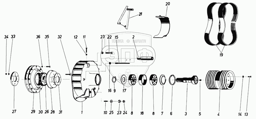Каталог запасных частей к технике: Fortschritt Е-281-С. Отбор мощности двигателя