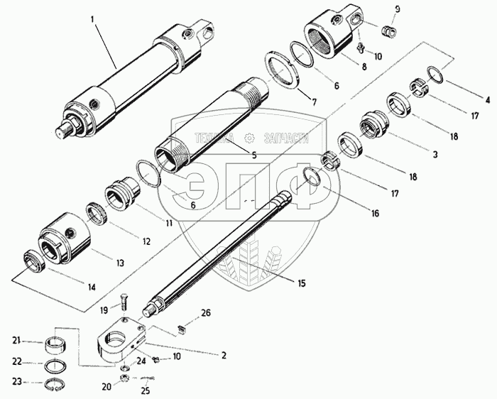 Каталог запасных частей к технике: Fortschritt Е-281-С. Рабочий цилиндр - регулировочное устройство