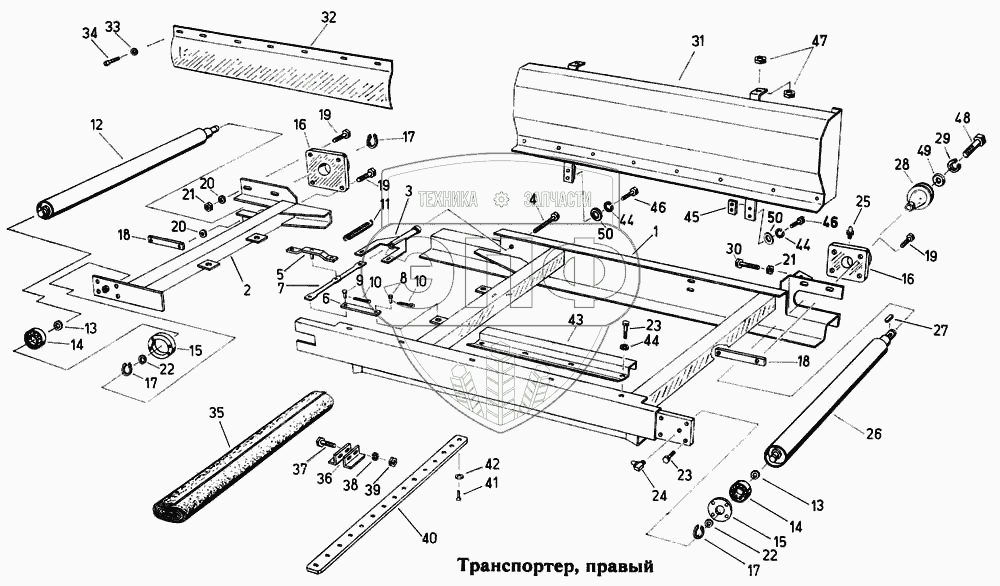 Каталог запасных частей к технике: Fortschritt Е-303. Транспортер, правый