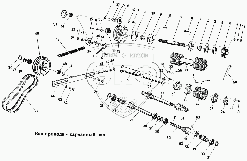 Каталог запасных частей к технике: Fortschritt Е-303. Вал привода – карданный вал