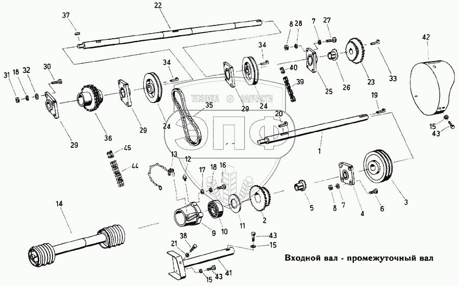 Каталог запасных частей к технике: Fortschritt Е-303. Входной вал – промежуточный вал