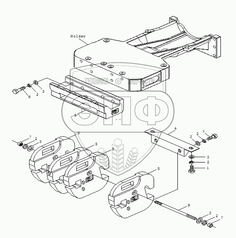 Каталог запасных частей к технике: Foton Europard 40. Front Ballast Bracket Assembly