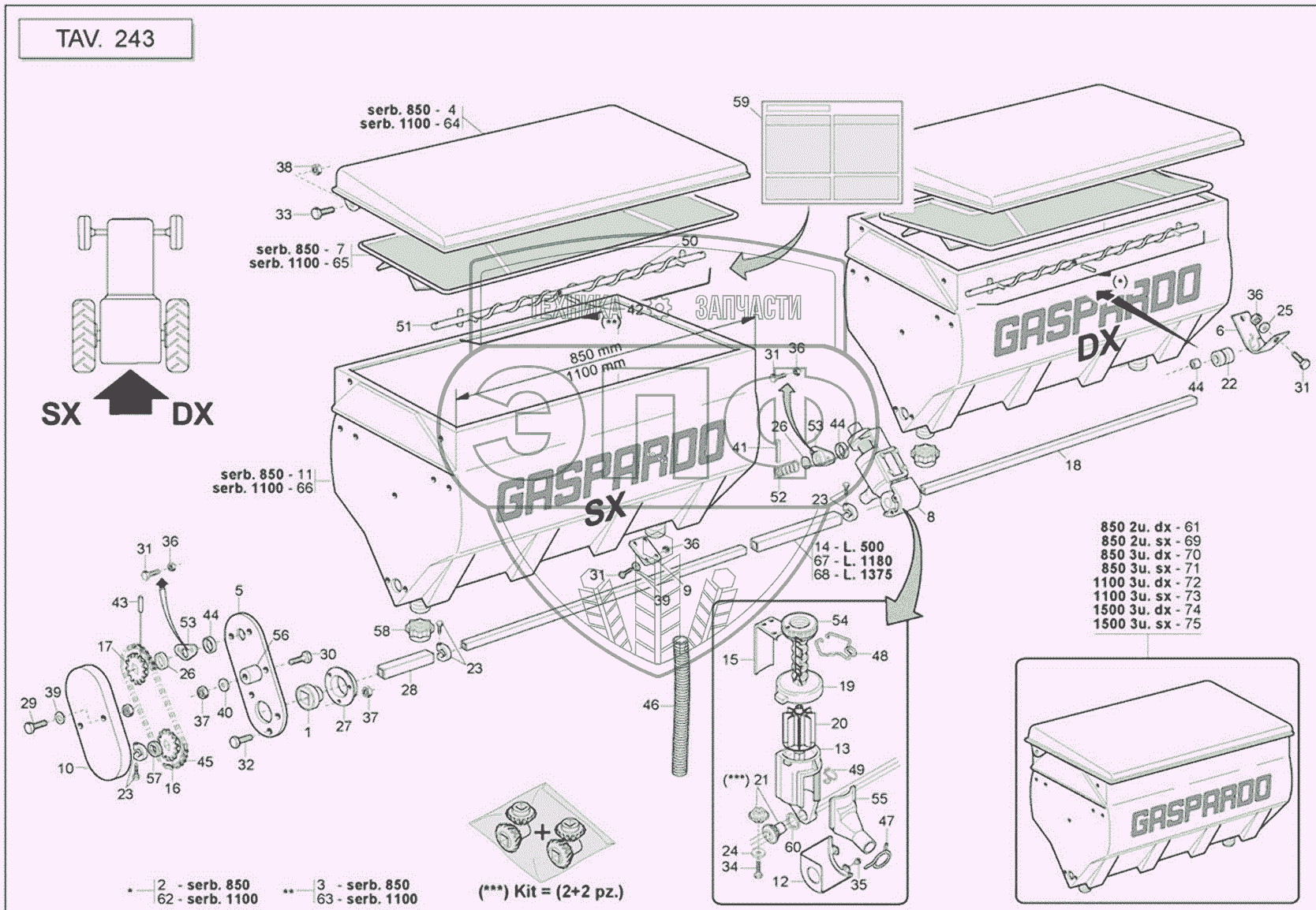 Каталог запасных частей к технике: Gaspardo MAESTRA (MT). PLASTIC FERTILIZER SPREADER TANKS