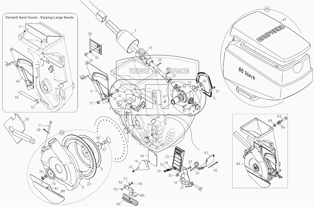 Каталог запасных частей к технике: Gaspardo Сеялка MAXIMETRO. SEED DISTRIBUTOR