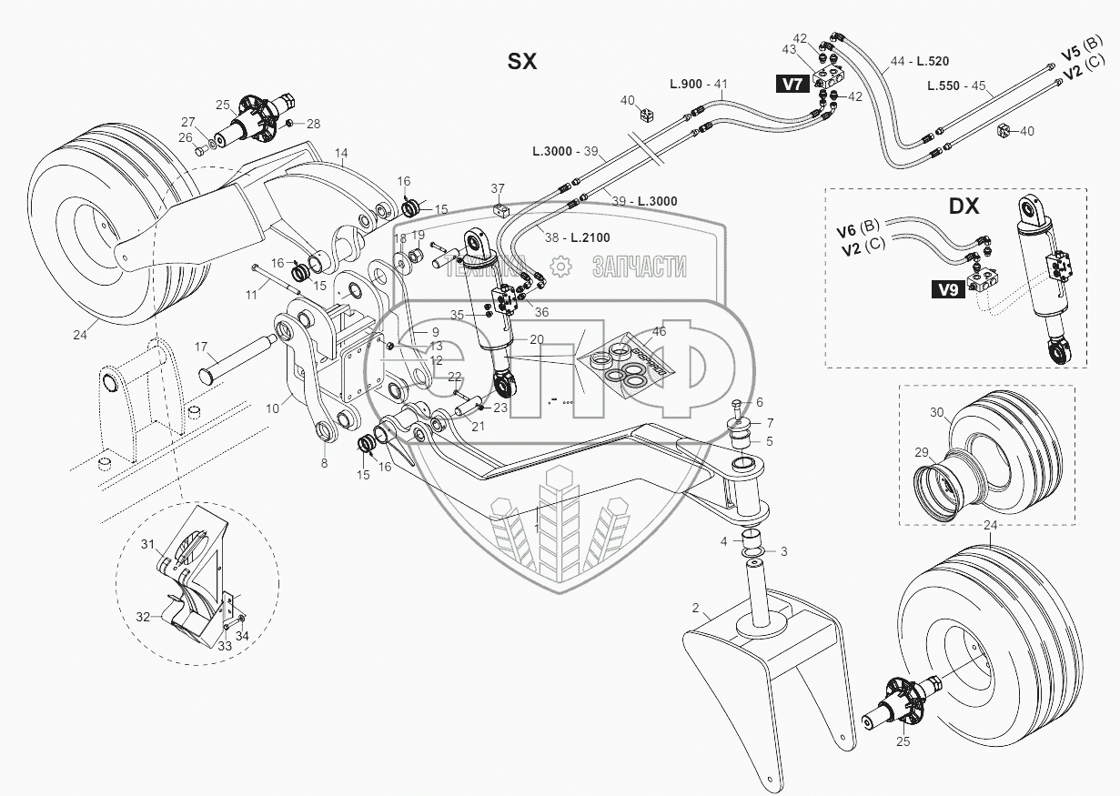 Каталог запасных частей к технике: Gaspardo Сеялка MAXIMETRO. SIDE WHEELS