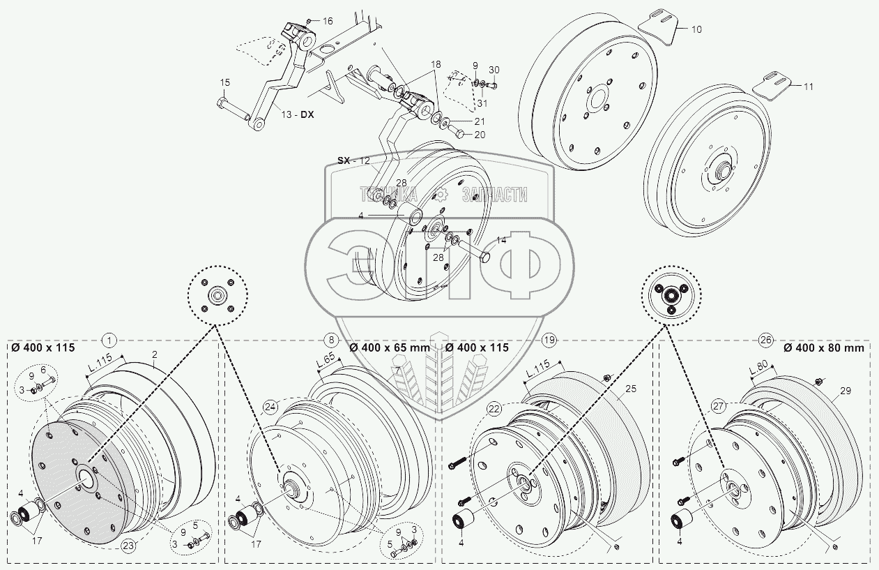 Каталог запасных частей к технике: Gaspardo Сеялка METRO MT/SP. "MT" DEPTH WHEELS