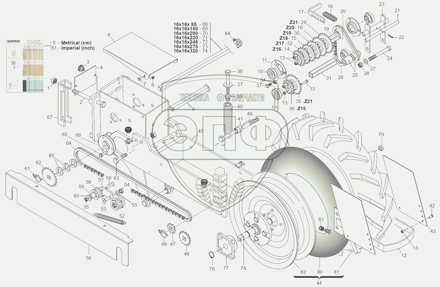 Каталог запасных частей к технике: Gaspardo Сеялка OLIMPIA, ORIETTA-C. TRANSMISSION WHEEL