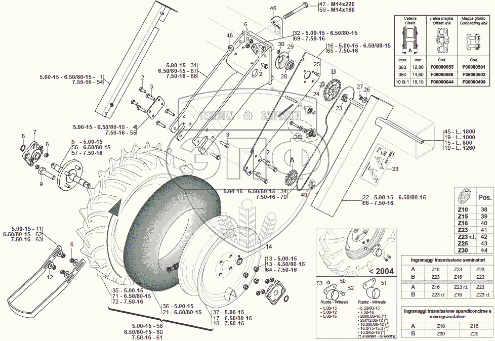 Каталог запасных частей к технике: Gaspardo SI. TRANSMISSION WHEELS