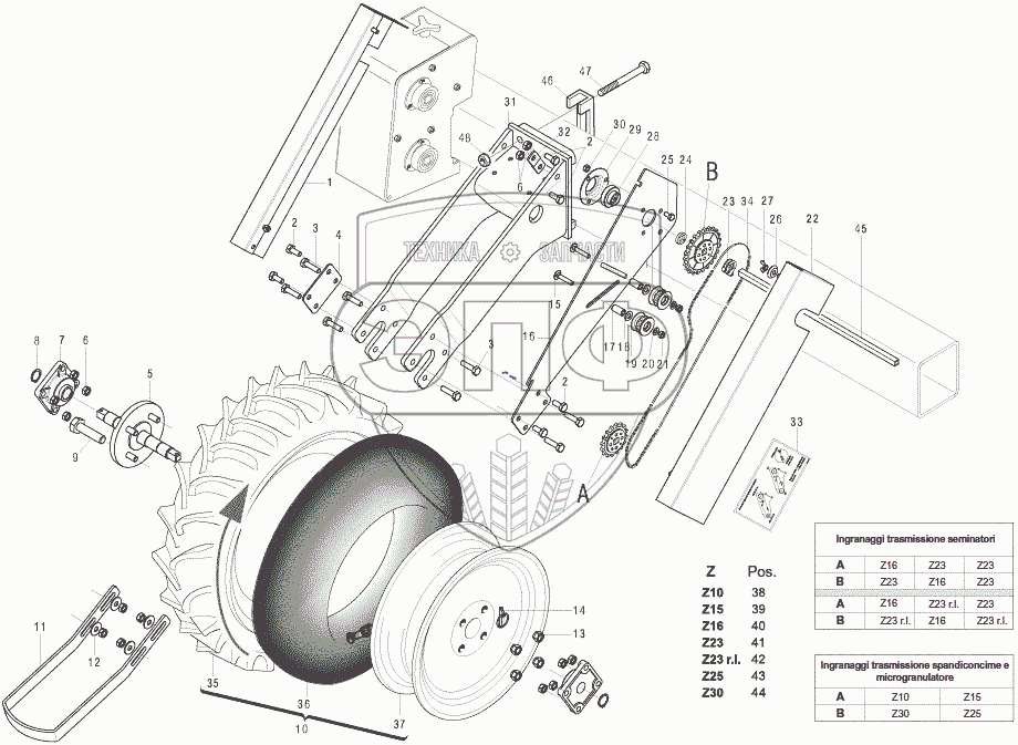 Каталог запасных частей к технике: Gaspardo SP DORADA. TRANSMISSION WHEELS