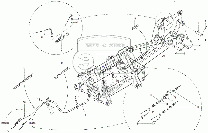 Каталог запасных частей к технике: Gaspardo UFO TZAR. TOWING TROLLEY HYDRAULIC PLANT