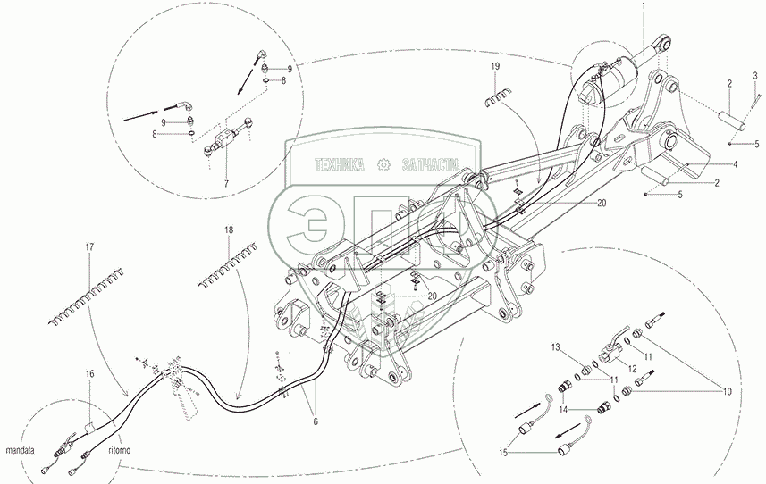 Каталог запасных частей к технике: Gaspardo UFO TZAR. TOWING TROLLEY HYDRAULIC PLANT