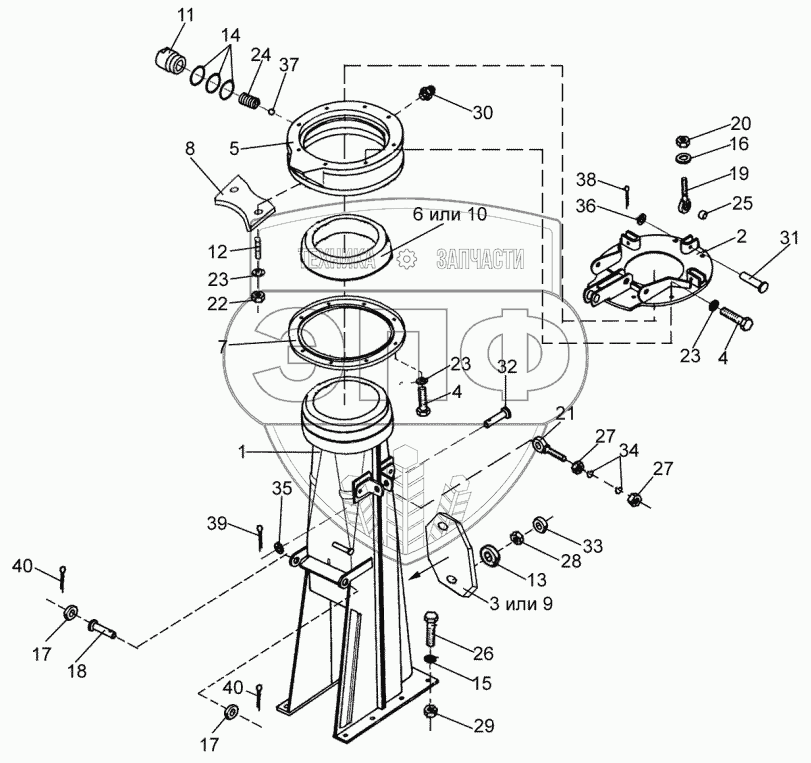 Каталог запасных частей к технике: Гомсельмаш КДП-3000 Палессе FT40. Основание силосопровода КПТ 0103000Б