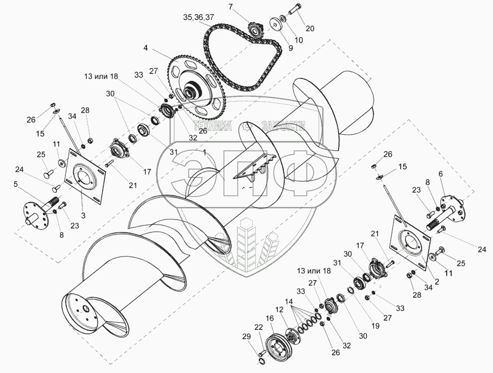 Каталог запасных частей к технике: Гомсельмаш КДП-3000 Палессе FT40. Установка шнека