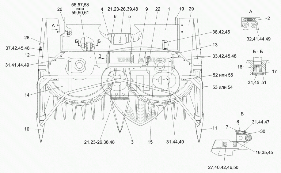 Каталог запасных частей к технике: Гомсельмаш КГС-0800000. Жатка КГС 0800010 (вид сверху)