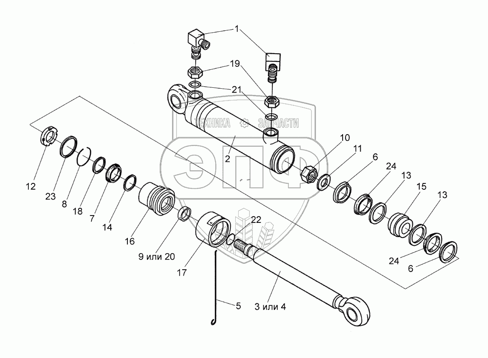 Каталог запасных частей к технике: Гомсельмаш КПК Полесье-3000. Гидроцилиндр