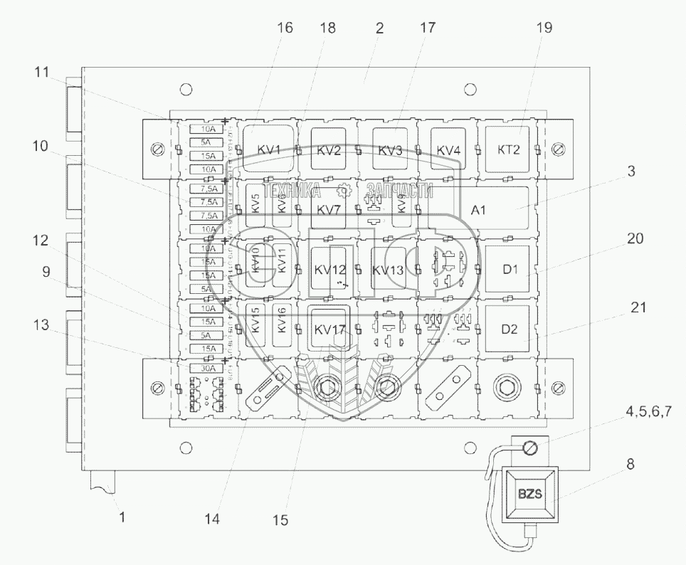 Каталог запасных частей к технике: Гомсельмаш KС-100. Блок реле КС-100-0700890