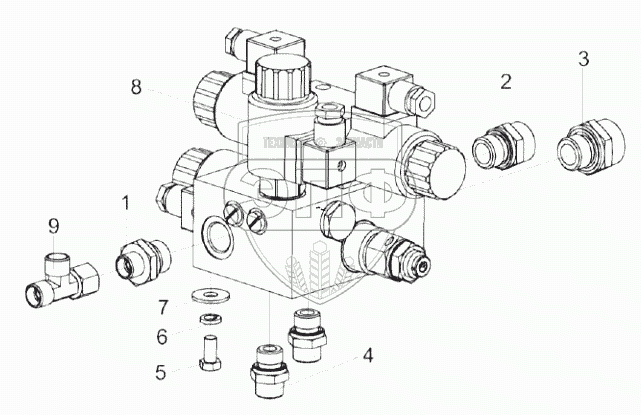 Каталог запасных частей к технике: Гомсельмаш KС-100. Гидроблок навески КС-100-0602300