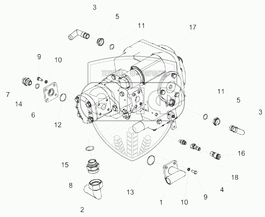 Каталог запасных частей к технике: Гомсельмаш KС-100. Гидронасос двухсекционный КС-100-0601110