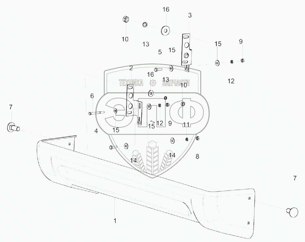Каталог запасных частей к технике: Гомсельмаш KС-100. Установка бампера КС-100-0100080