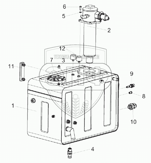 Каталог запасных частей к технике: Гомсельмаш KС-100. Бак масляный КС-100-0600010