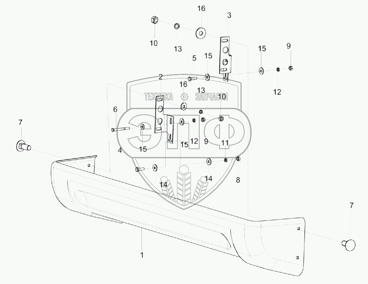 Каталог запасных частей к технике: Гомсельмаш KС-100. Установка бампера КС-100-0100080