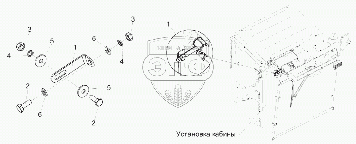 Каталог запасных частей к технике: Гомсельмаш KС-100. Установка кронштейна КС-100-0121110