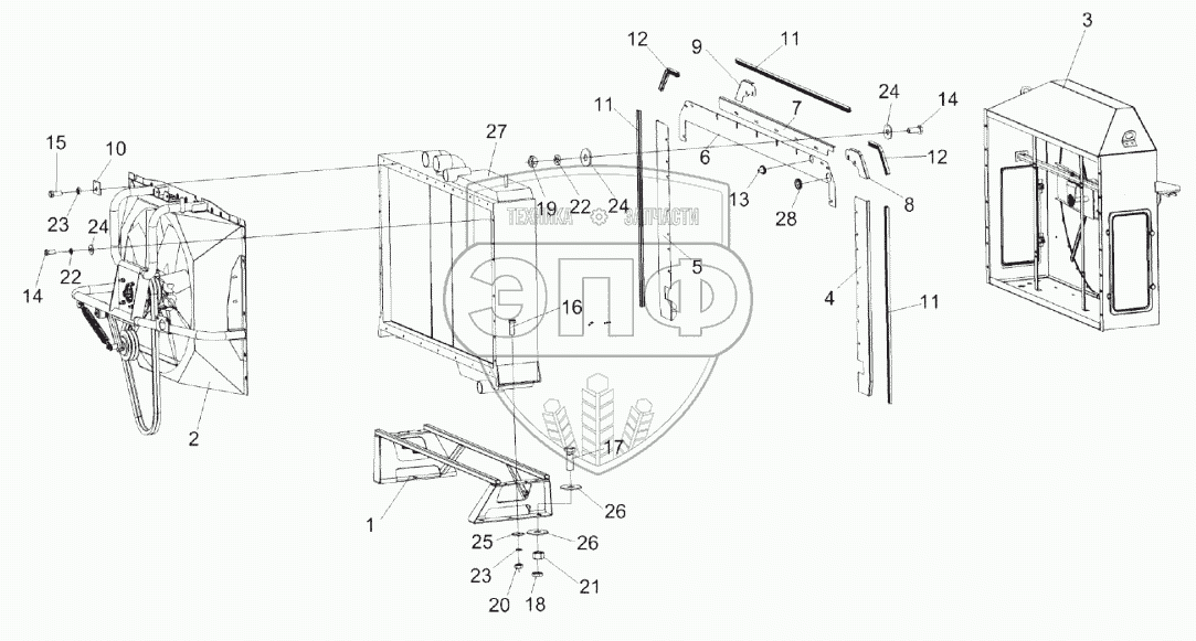 Каталог запасных частей к технике: Гомсельмаш KС-200. Радиатор КС-200-0116040Э1