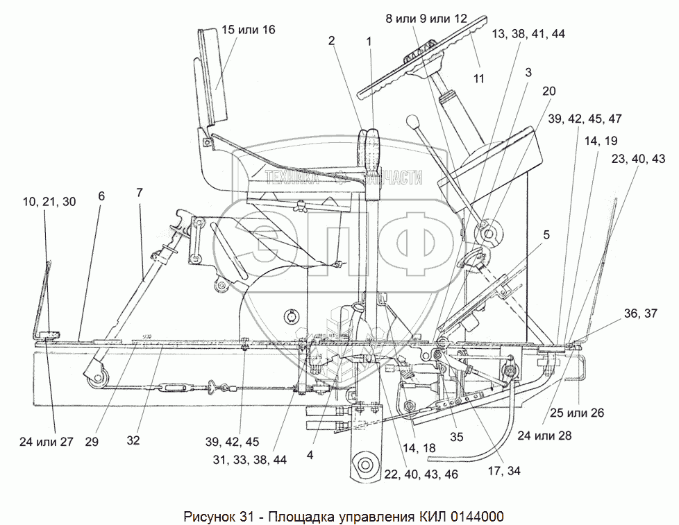Каталог запасных частей к технике: Гомсельмаш КСК-100А-3. КИЛ 0144000-06 Площадка управления