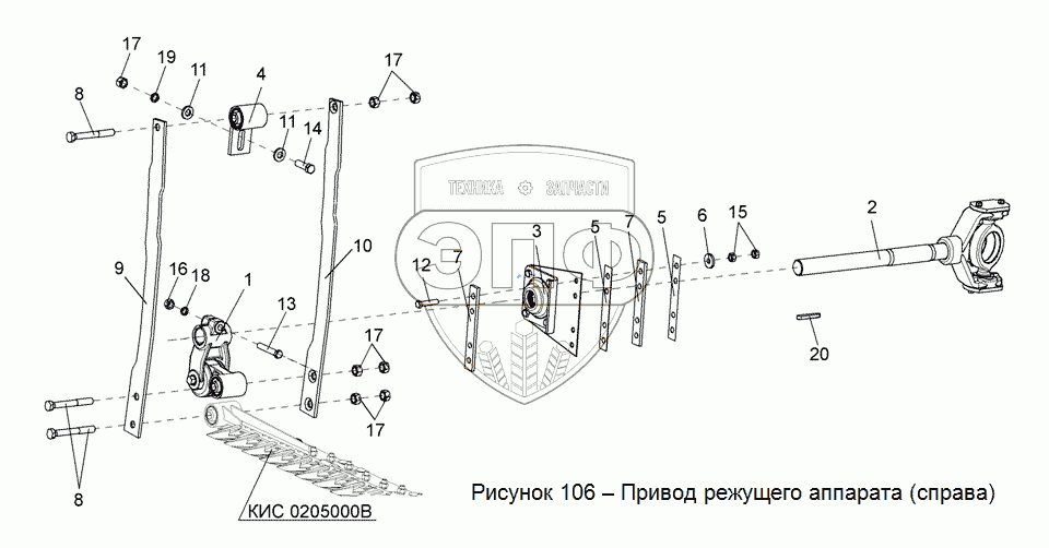 Каталог запасных частей к технике: Гомсельмаш КСК-100А-3. Привод режущего аппарата (справа)