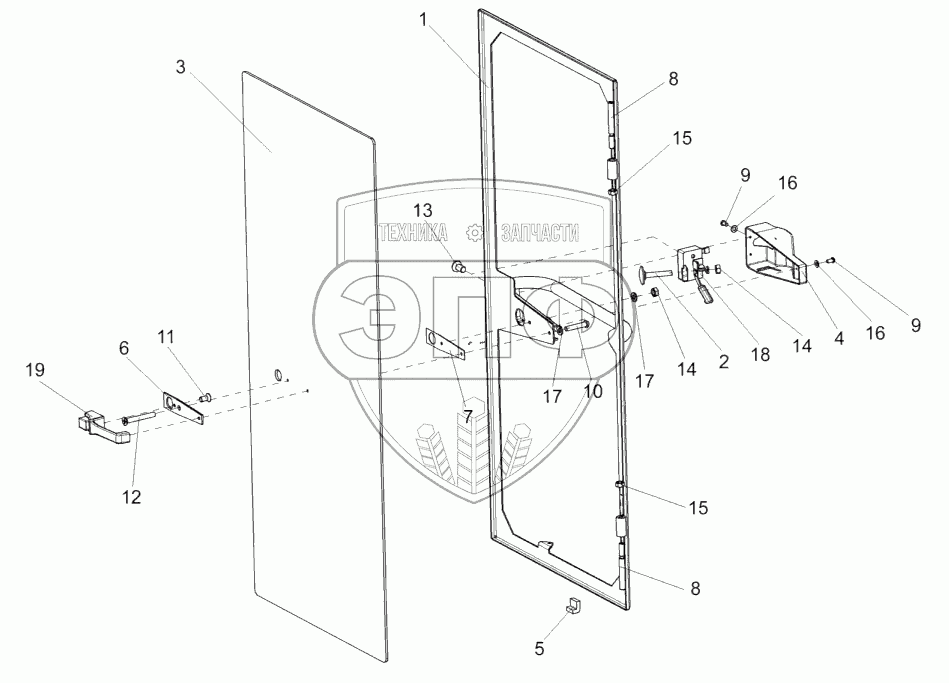 Каталог запасных частей к технике: Гомсельмаш КСК-600. Дверь КГС 0120400