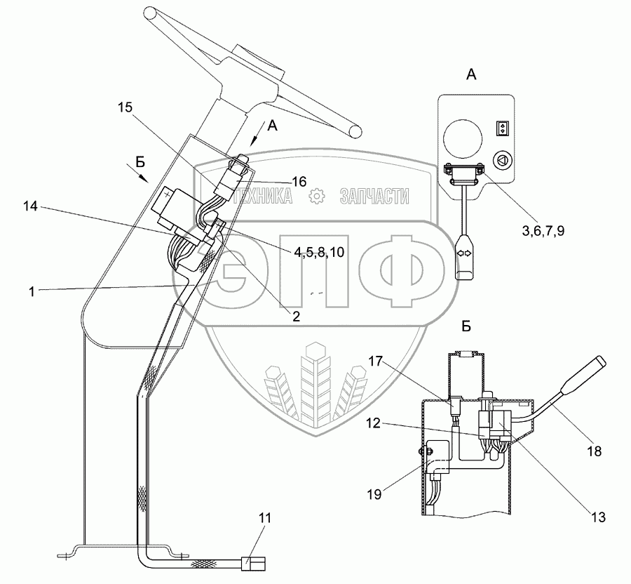 Каталог запасных частей к технике: Гомсельмаш КСК-600. Электрооборудование рулевой колонки КГС 0119570