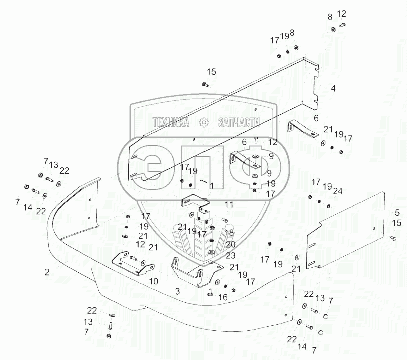 Каталог запасных частей к технике: Гомсельмаш КСК-600А. Установка бамперов КГС-3-0100440