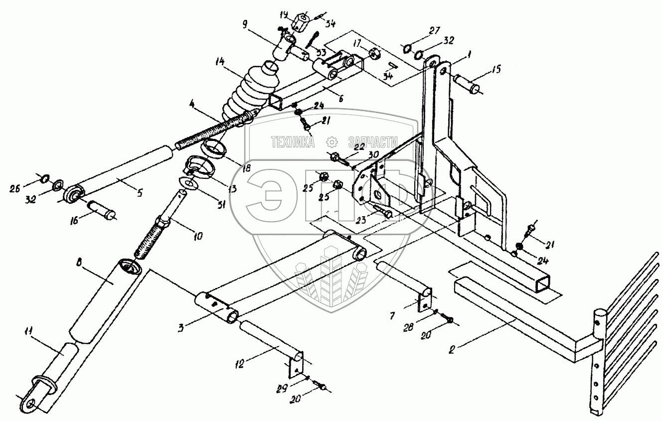 Каталог запасных частей к технике: Гомсельмаш КСН-6. Рамка, тяги валкоукладчика (левые)