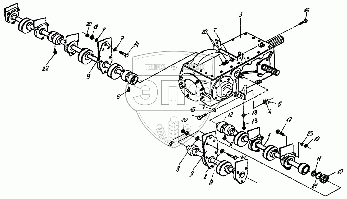 Каталог запасных частей к технике: Гомсельмаш КСН-6. Редуктор с валами (КСН0114000)