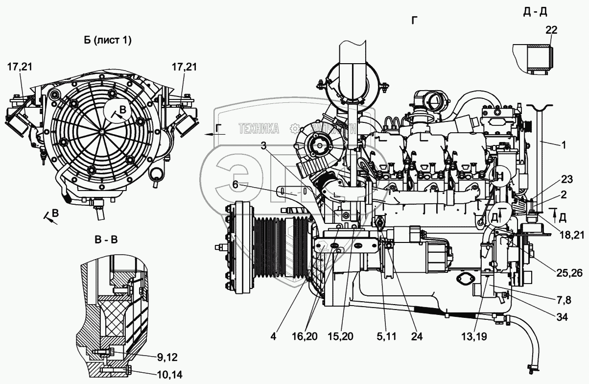 Каталог запасных частей к технике: Гомсельмаш КВК-6025. Двигатель КСК-6025-0116010