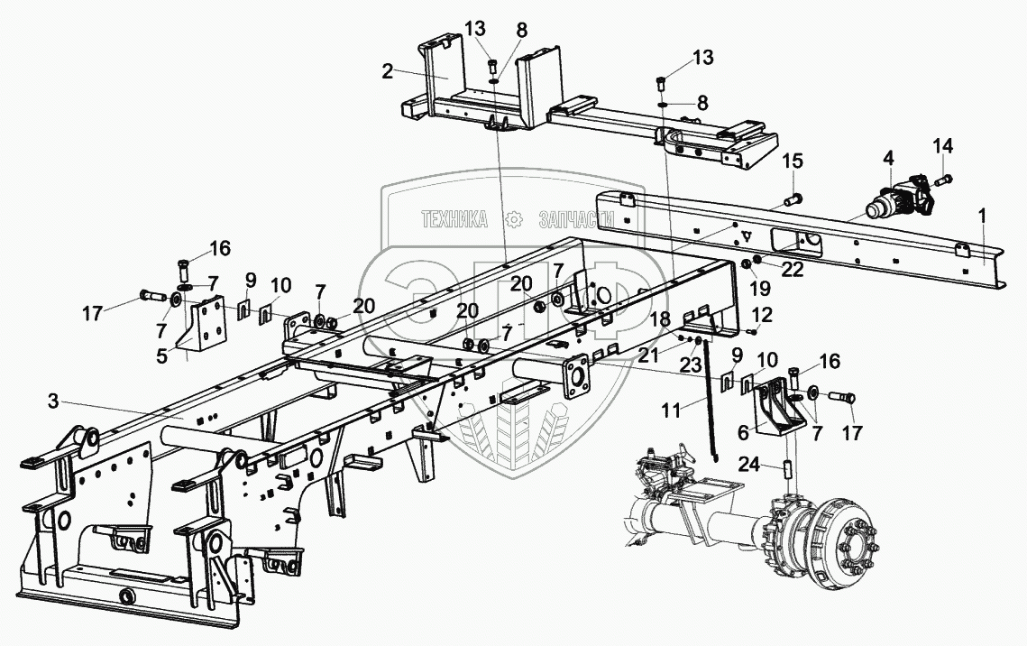Каталог запасных частей к технике: Гомсельмаш КВК-6025. Шасси КСК-6025-0101000