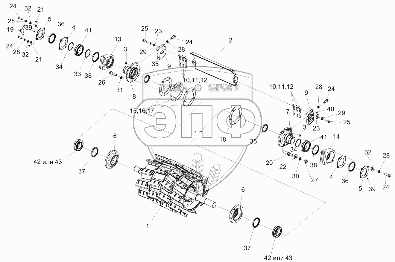 Каталог запасных частей к технике: Гомсельмаш КВК-6025. Установка барабана КСК-6025-0153700