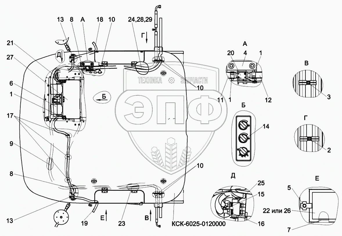 Каталог запасных частей к технике: Гомсельмаш КВК-6025. Установка испарителя КСК-6025-0121020