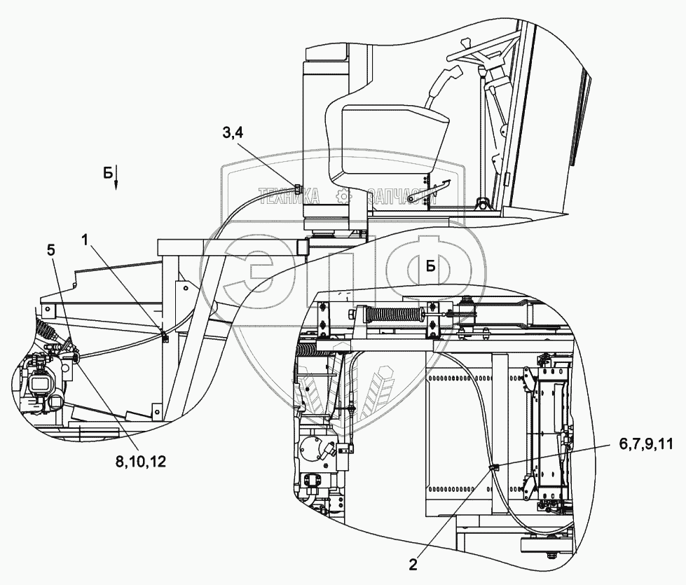 Каталог запасных частей к технике: Гомсельмаш КВК-6025. Установка троссов гидростата КСК-6025-0119150