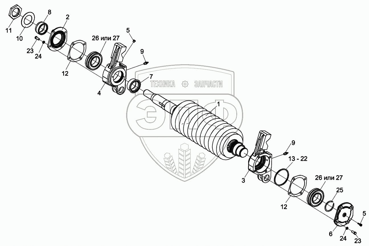 Каталог запасных частей к технике: Гомсельмаш КВК-6025. Валец задний КСК-6025-0157210