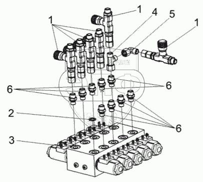 Каталог запасных частей к технике: Гомсельмаш КВК-8060. Гидроблок пятисекционный КВК 0602310А