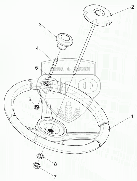 Каталог запасных частей к технике: Гомсельмаш КВК-8060. Установка колеса рулевого КЗК-12-0122300