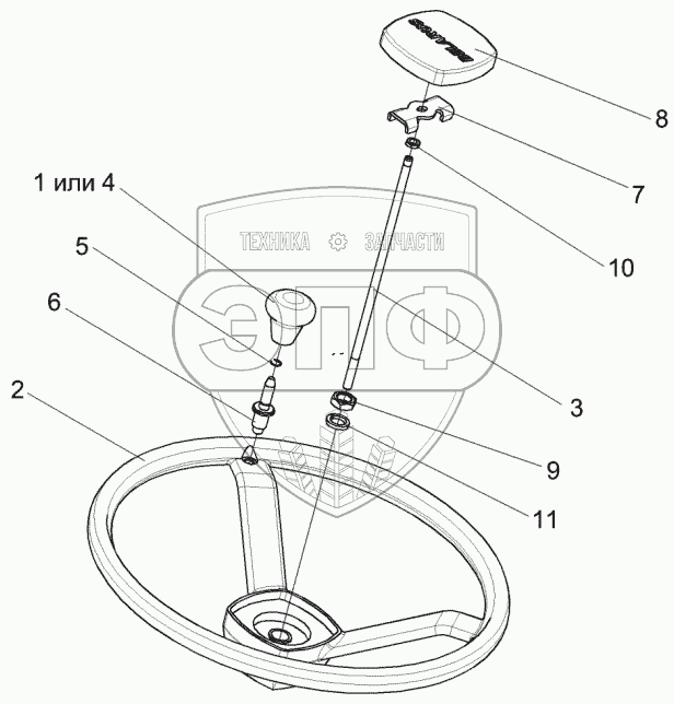 Каталог запасных частей к технике: Гомсельмаш КВК-8060. Установка колеса рулевого УЭС 0302560