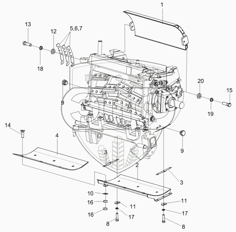 Каталог запасных частей к технике: Гомсельмаш КВК-8060. Установка поддона КВК 0115230