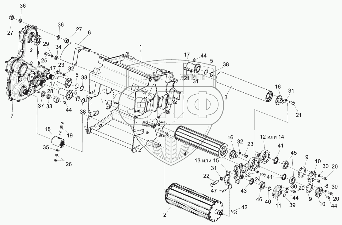 Каталог запасных частей к технике: Гомсельмаш КВК-8060. Установка вальцев нижних