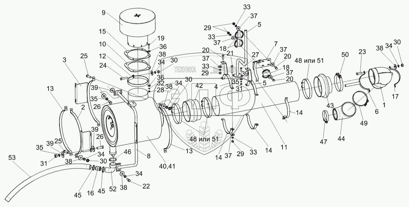 Каталог запасных частей к технике: Гомсельмаш КВК-8060. Установка воздухоочистителя КВК 0153000