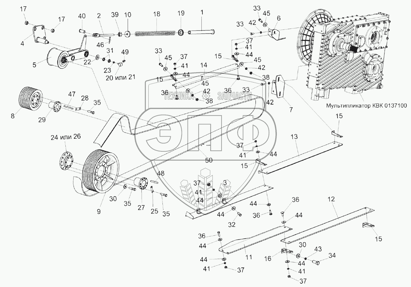 Каталог запасных частей к технике: Гомсельмаш КВК-8060. Привод измельчающего барабана КВК 0130000