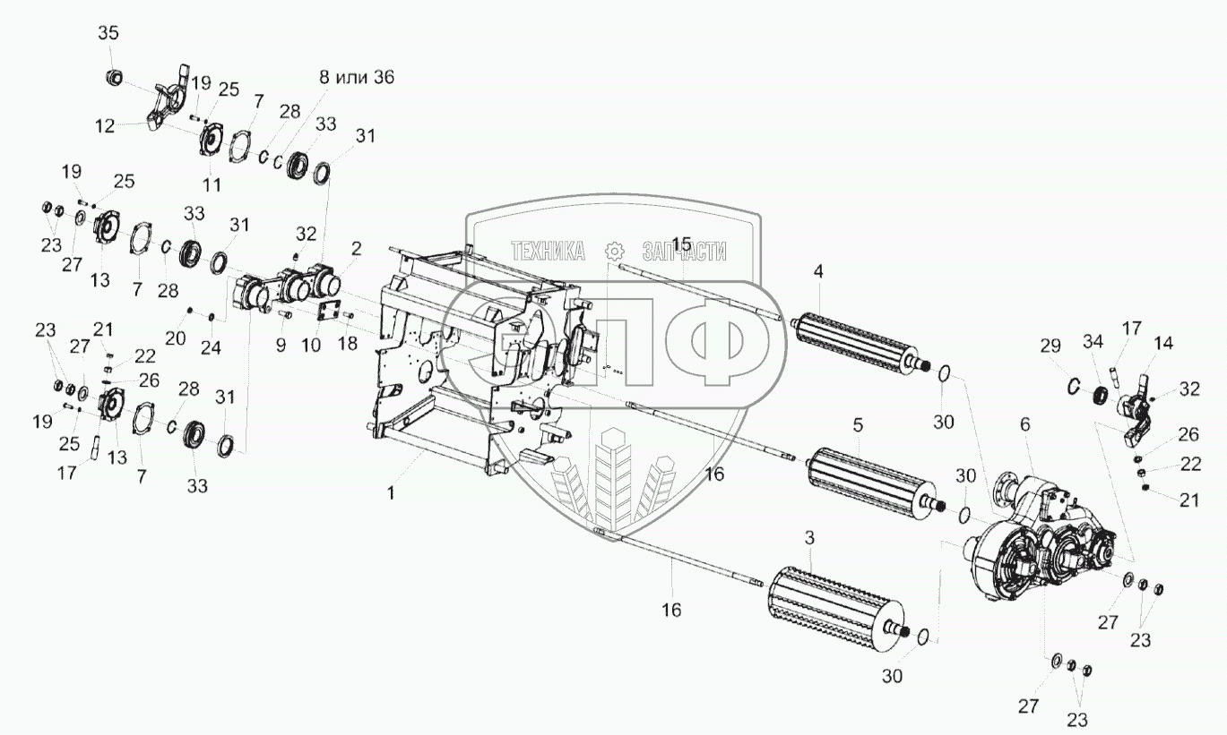 Каталог запасных частей к технике: Гомсельмаш КВК-8060. Установка вальцев верхних