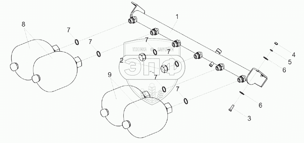 Каталог запасных частей к технике: Гомсельмаш КВК-8060. Блок пневмогидроаккумуляторов КВК 0602350Б